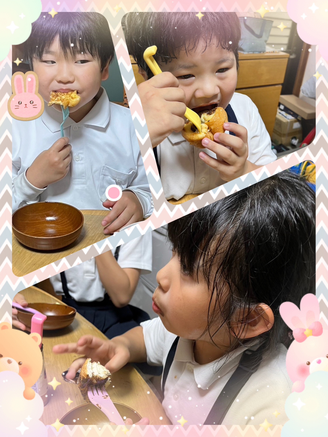 (アレルギーのある子はパンを他の味付けに変更して食べました(^-^))