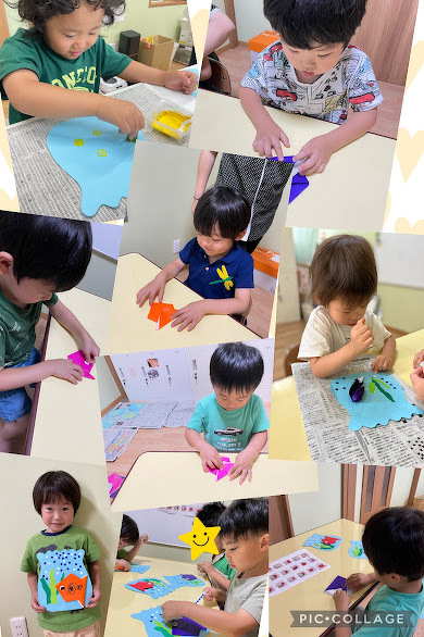 あひる組の子ども達は七夕制作で、金魚を作りました。