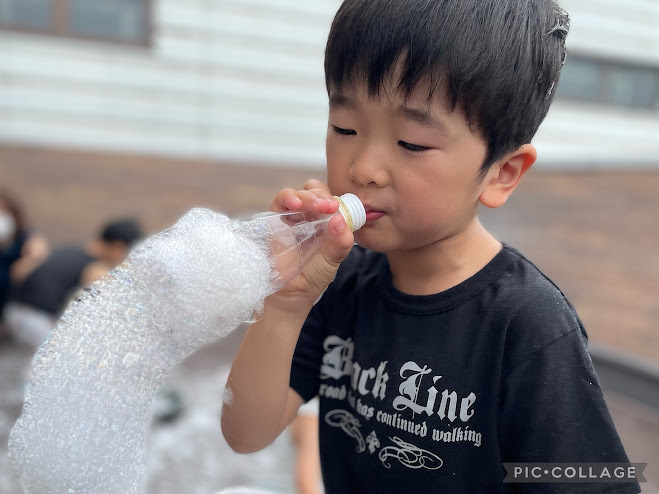 くら・らぼの子ども達もベランダに出て、しゃぼん玉や水遊びを楽しんでいますよ。