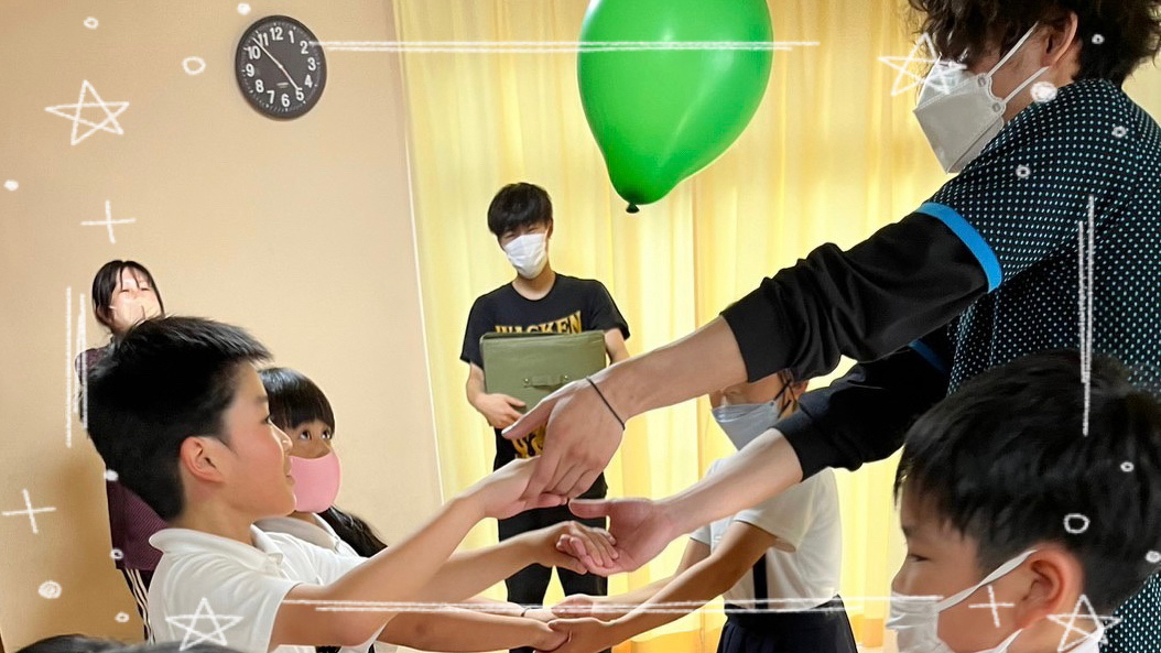 ②手を離さず風船をゴールまでポンポンと運んでいきます