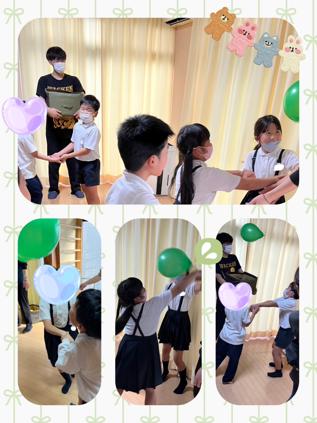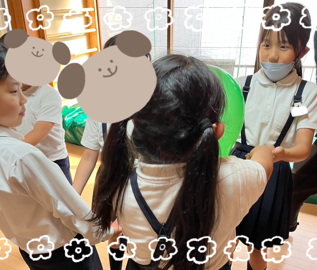 ③風船を触った子から後ろに並んで自分のところに風船がくるのを待ちます