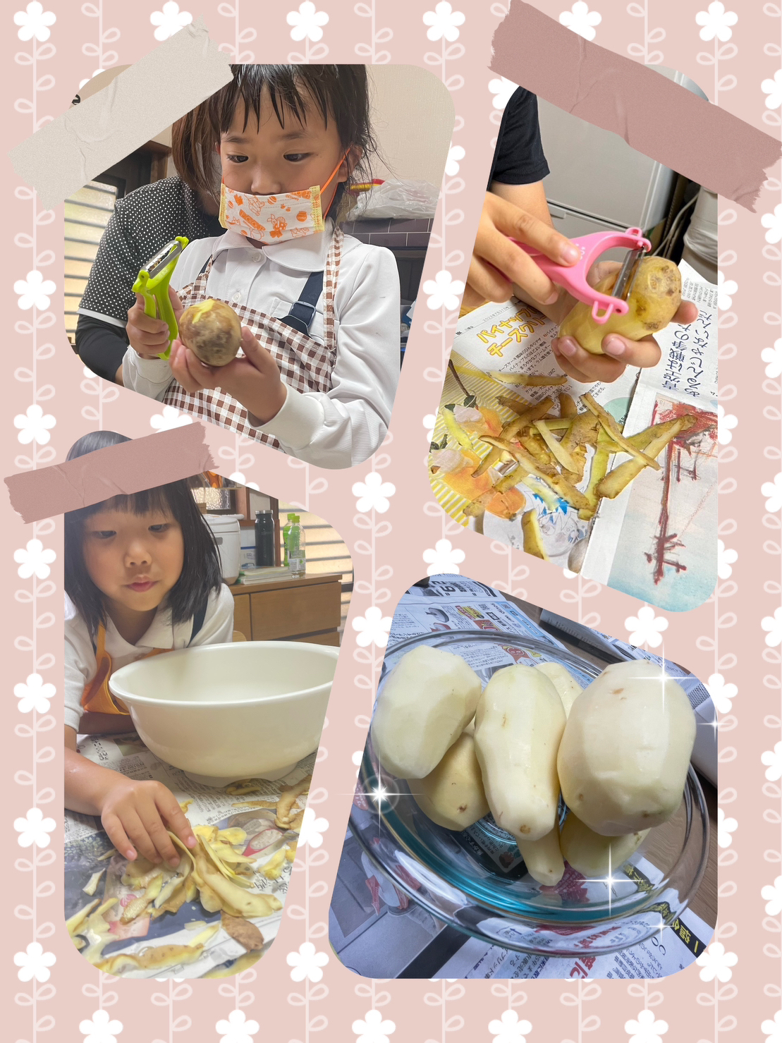 ピーラーを使ってみんなでたくさんのじゃがいもの皮を剝きました(^^)