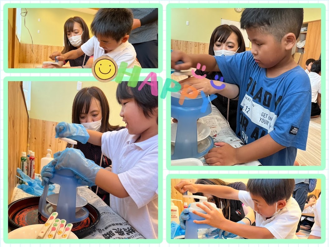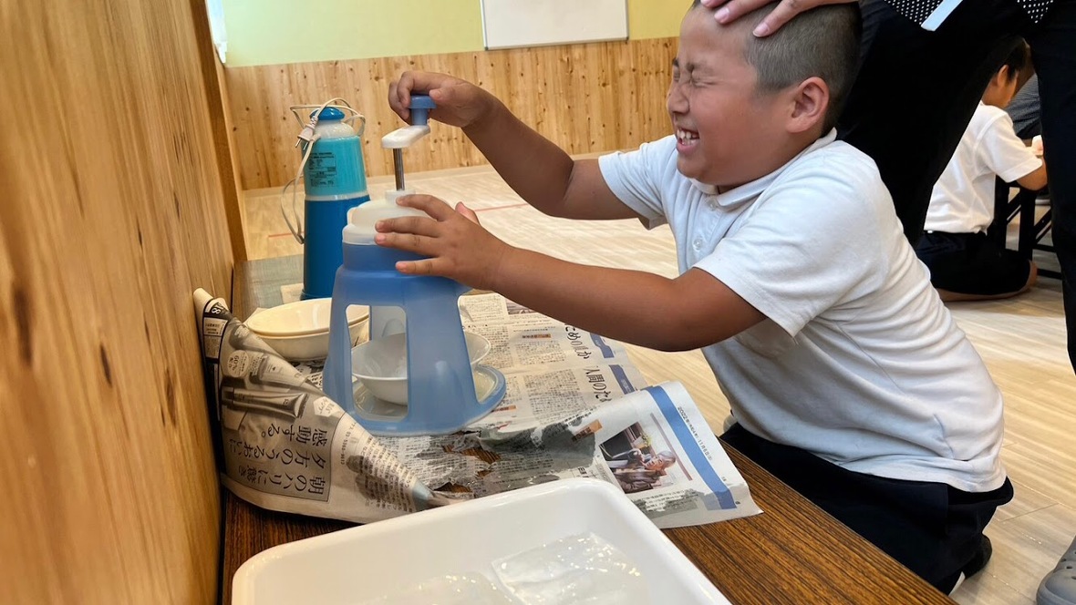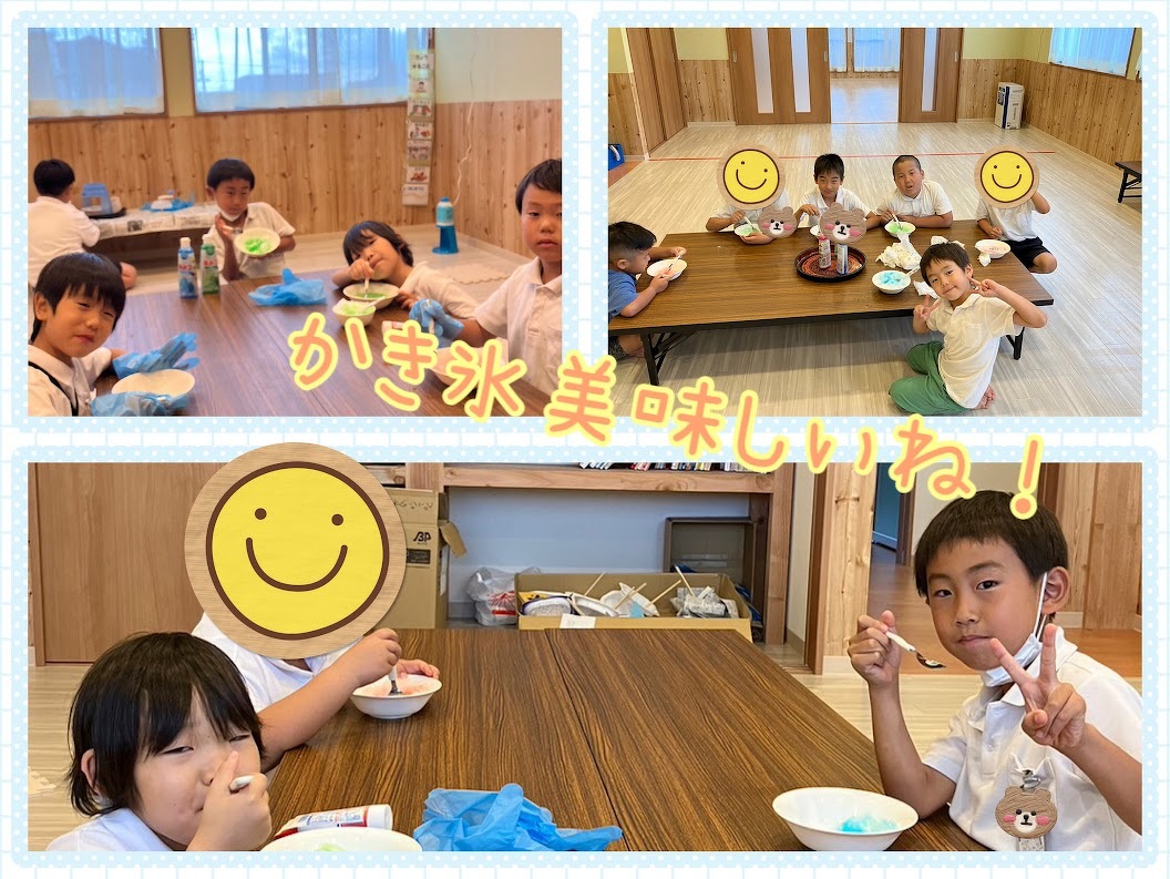 2023年07月24日(月) 活動ブログ アイリー・らぼ☆星祭り達成!! こんにちは!アイリー・らぼ放デイです。 今週は前回紹介した星祭りの星を20個集めて目標達成した曜日がありました。 そのご褒美としてかき氷をしました! 皆かき氷を作るところからはじめましたが、とても楽しそうに作っていました。 食べる時には、いちご、ブルーハワイ、メロンの3つの味から好きな味を選んで食べました。 みんな何度もおかわりをしていました!