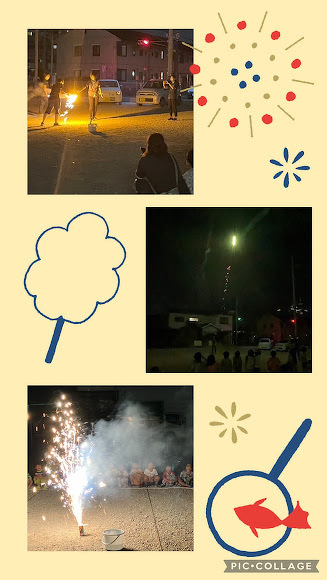 そして、もうひとつのお楽しみは花火でした。時間が押してしまい、手持ち花火は出来ませんでしたが、打ち上げ花火をみんなで見ました。