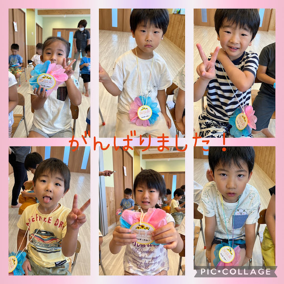 先生からご褒美メダルをかけてもらい、どの子も誇らしげな顔をしていましたよ。