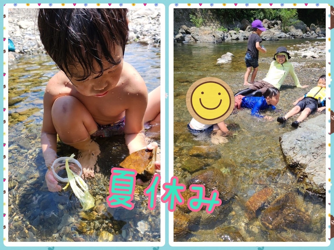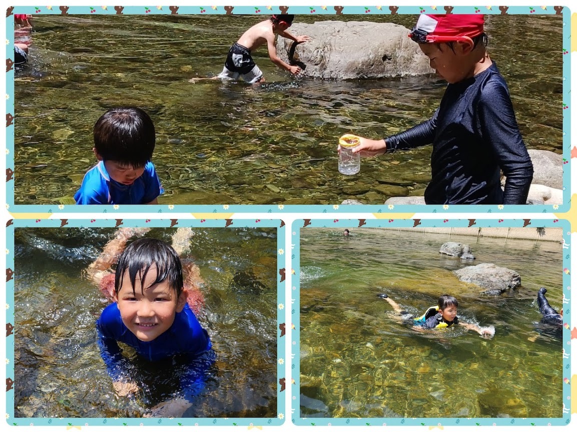 2023年08月07日(月) 活動ブログ アイリー・らぼ☆ 川遊びと事業所間交流 こんにちは!8月になり夏休みが始まりました。 今週はアイリー学習さんと交流をしたり、川遊びに行ってきました。 学習さんとの交流では自分たちよりも大きなお兄さんたちと遊ぶ事ができました。 最初は緊張していましたが、徐々に緊張もほぐれていき最後には楽しくお話をする姿もありました。 夏休みも始まり川遊びに行ってきました。 皆水が大好きで時間を忘れて、いっぱい泳いでいました。