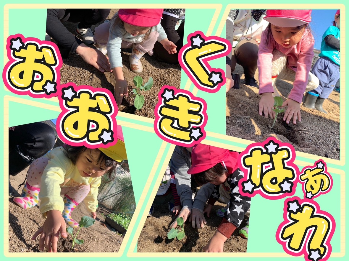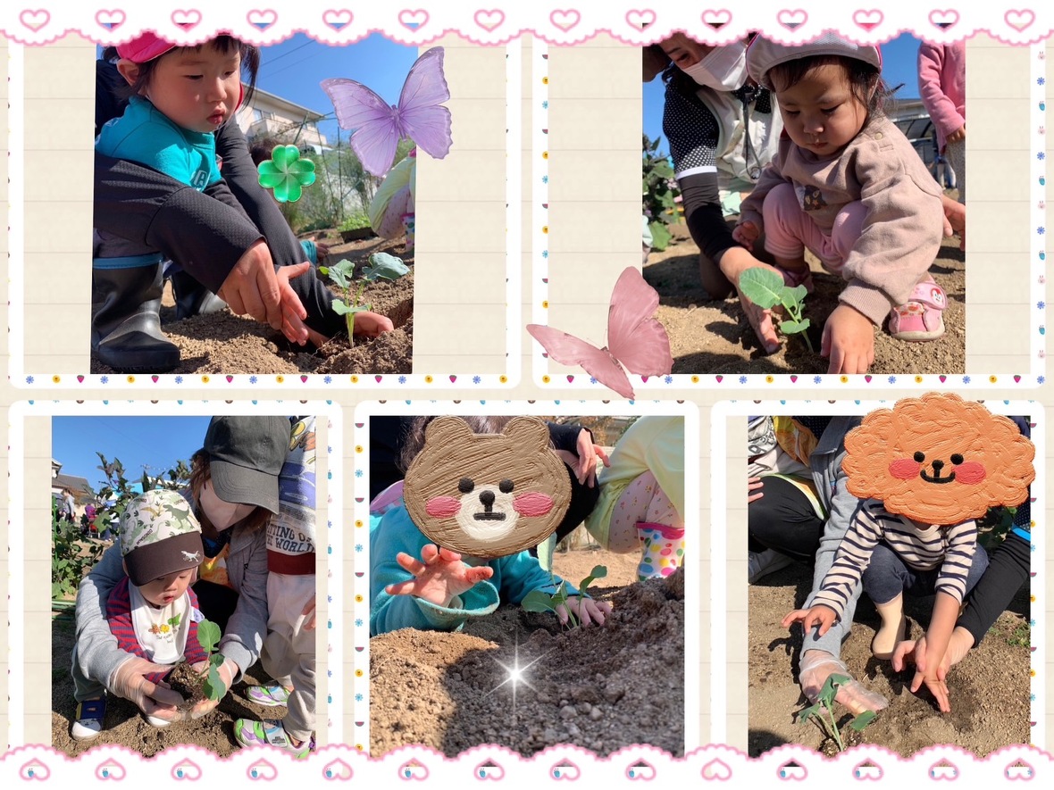 芋を掘った後”ブロッコリーの苗”も植えましたよ。植え方を教えてもらい目線を苗に合わせて寝そべって植えている子どももいました。美味しいブロッコリーが沢山出来ると良いね♡