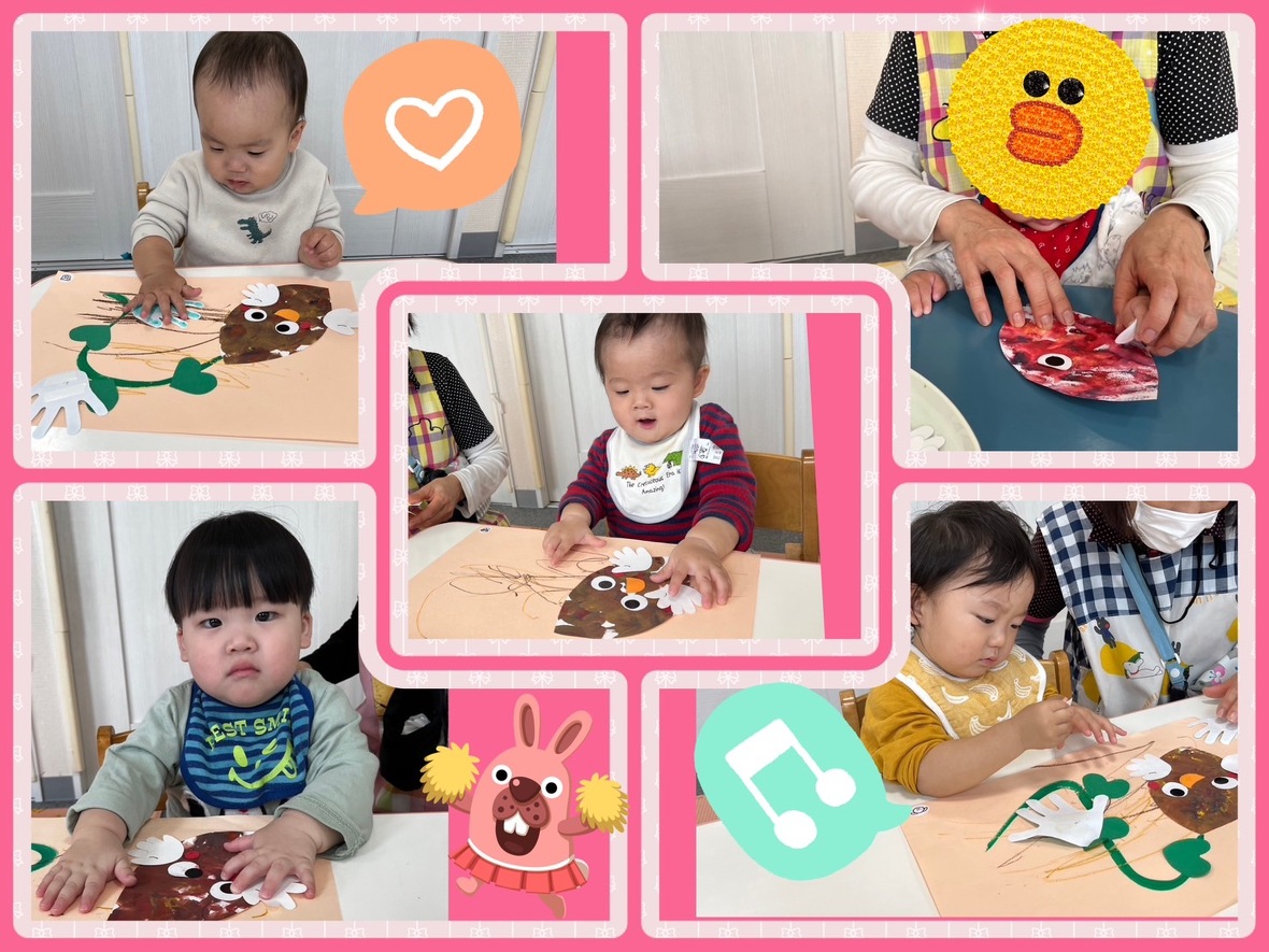 みにととろぐみさんは、本物の芋に触った後、芋の制作を楽しみました。クシャクシャになるほど、画用紙を愛情たっぷりに握りしめて可愛いお芋を作りましたよ。