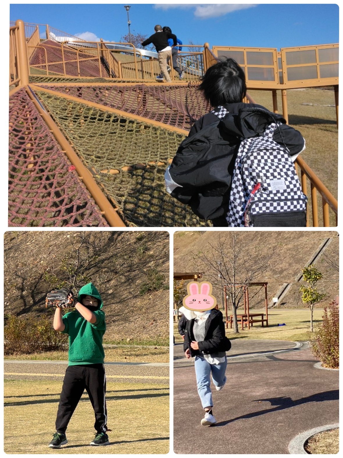 「すごい遠くまで見える!」「また来たいね」と話をしながら丘の上からの景色を楽しみました!普段遊んでいる近くの公園とはまた違う楽しさがありあっという間の時間でした!