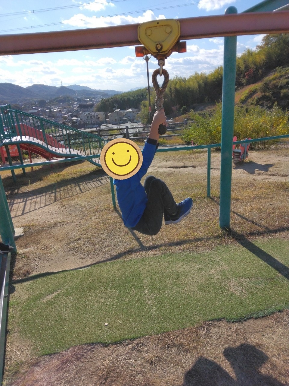 遊具では「先生見て、楽勝」とロープに捕まっていました。ものすごい体幹です(笑)