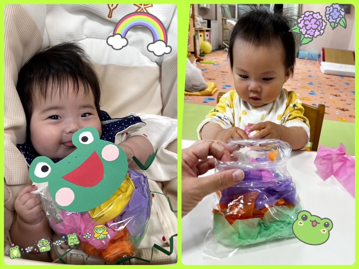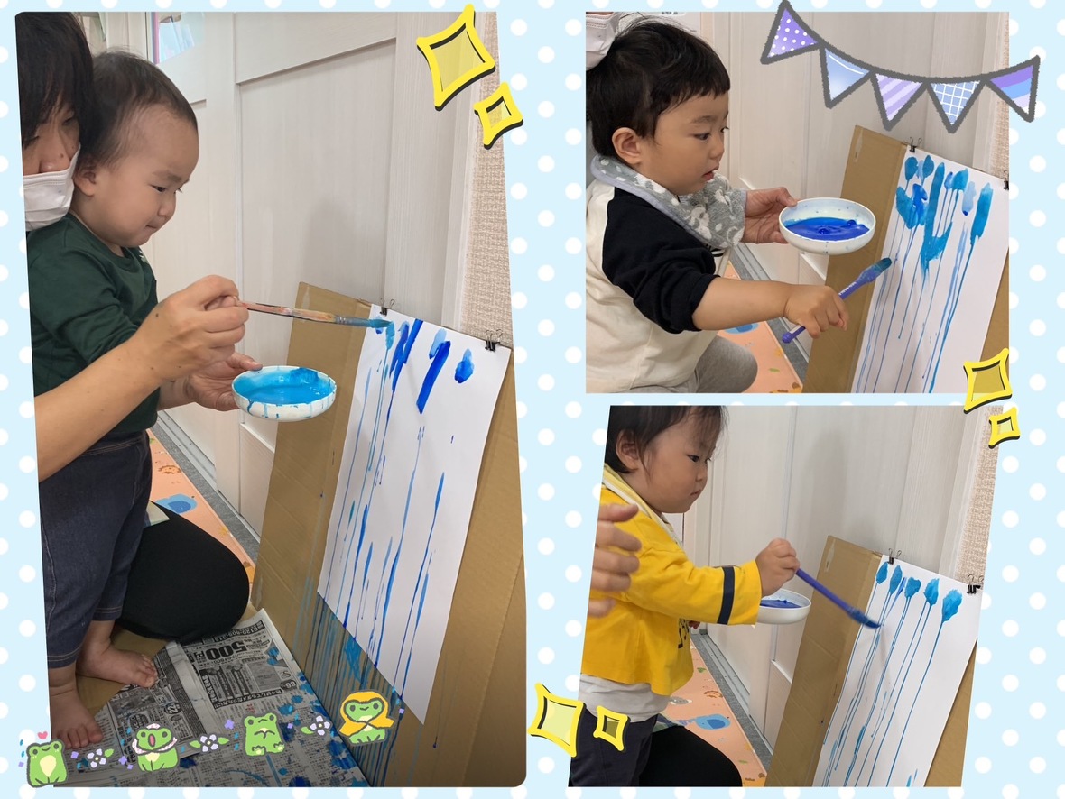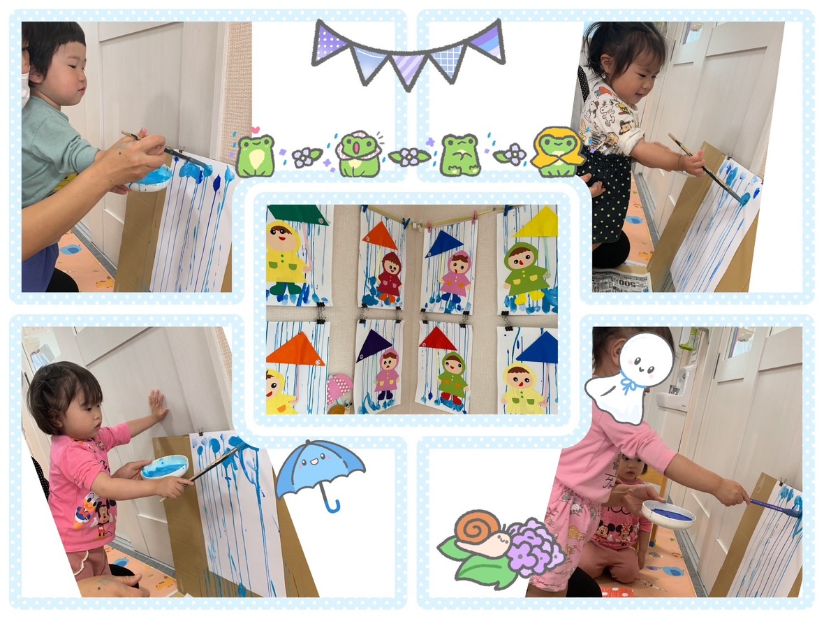 ととろ組さんは筆で雨を降らせてみたり、みにととろ組さんは、かえるを作ってみたりと梅雨ならではの制作も楽しんでいますよー♪