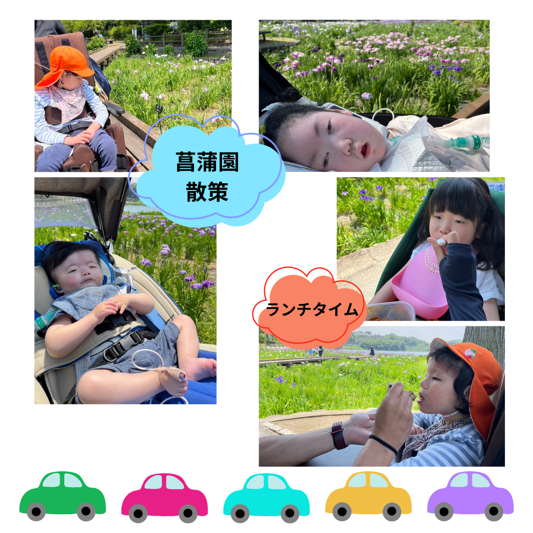 菖蒲の花がたくさん咲いていて、菖蒲園の真ん中を車椅子で通れるように整備されていたので、