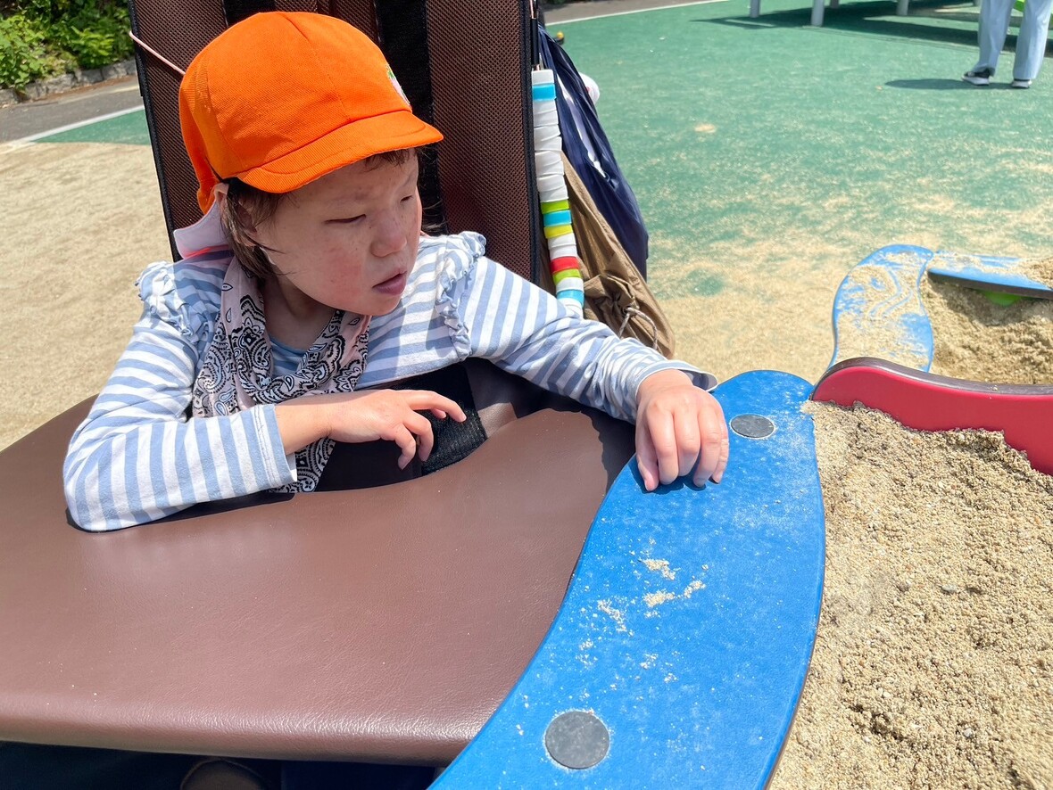 砂場もバギーのまま触れて不思議な表情を見せながらも砂の感覚も楽しめましたよ。