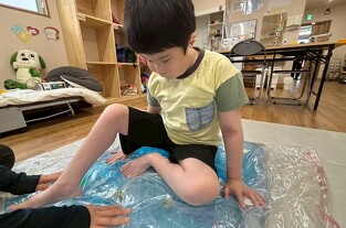 ボールを転がしてみたり、お友達同士でキャッチボールをしたり、思いっきり上へ投げてみたり、ボールだけでも何通りも遊んでいます。