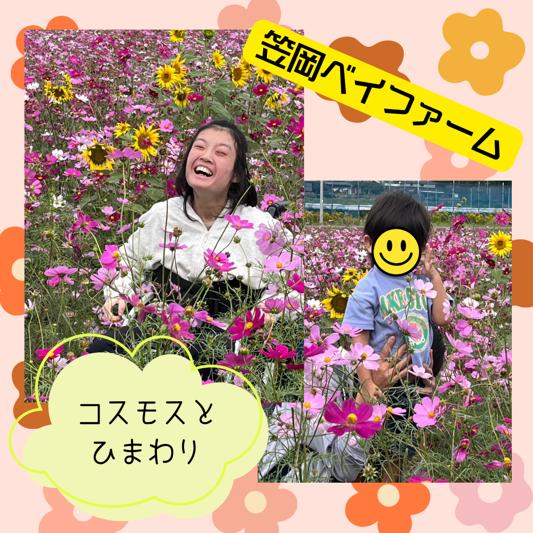 と、みんなで秋探しの散歩とコスモスを見に出かけました。