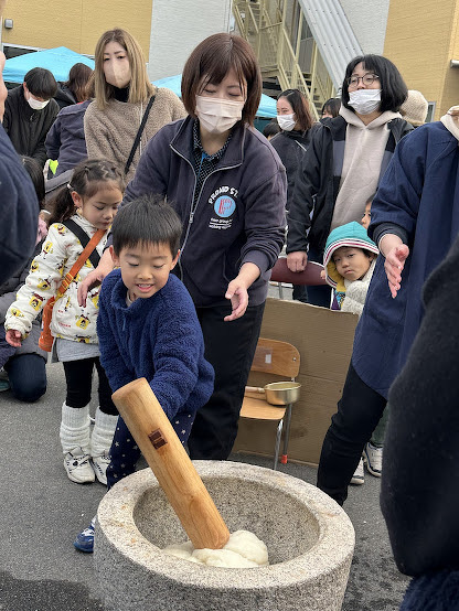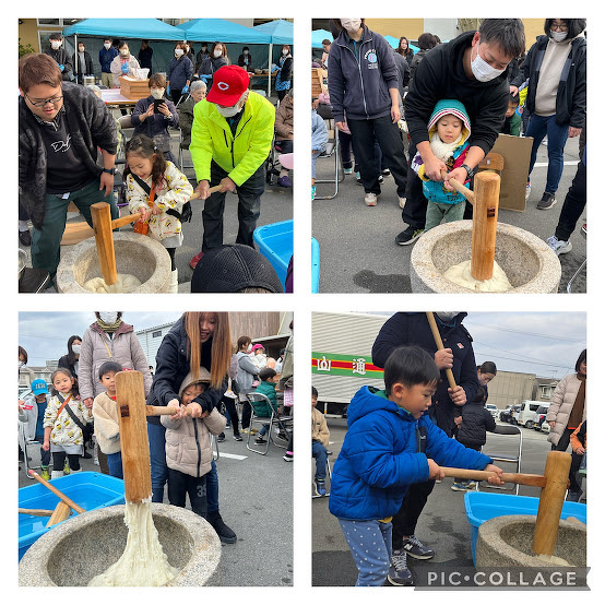 先日、事業所をあげての「餅つき大会」がありました。保育部門や学童部門、介護部門だけでなく