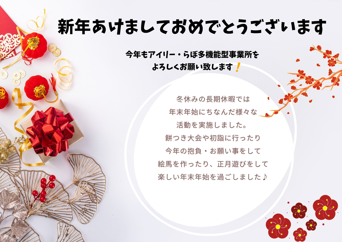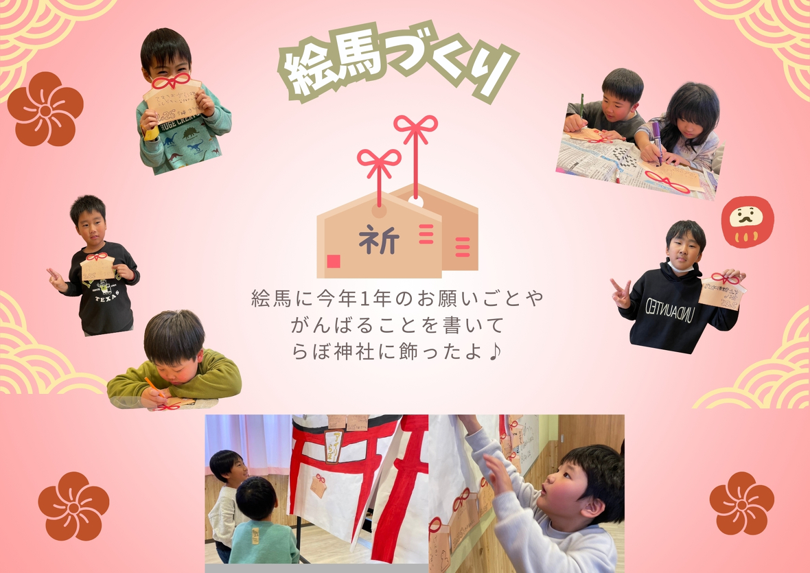餅つきや凧あげ、初詣、絵馬づくりなど年末年始の行事を行いました♪
