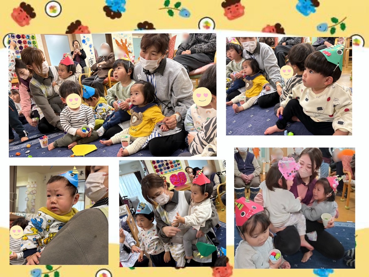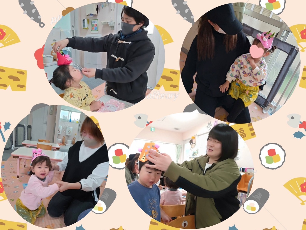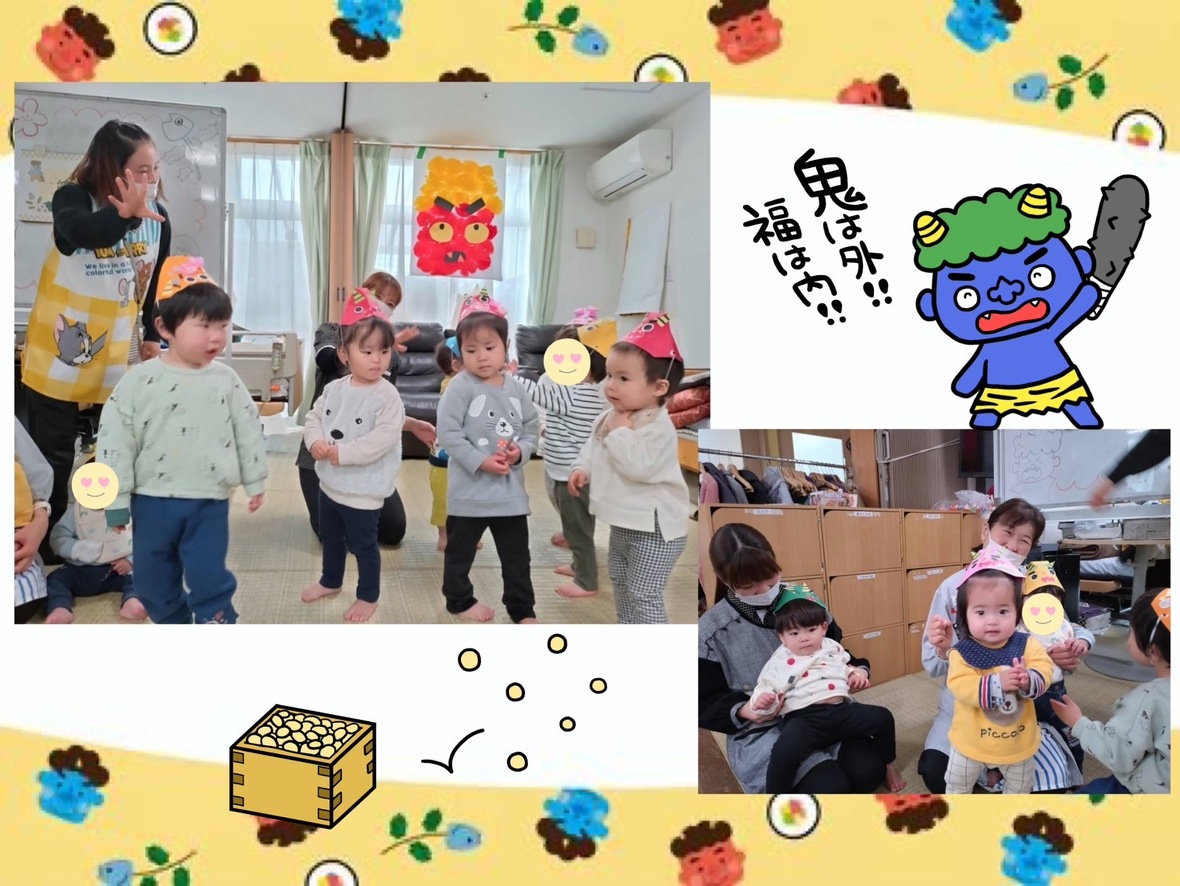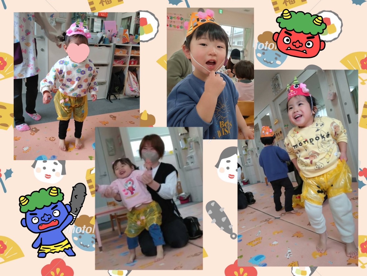 鬼の登場にびっくりして固まる子や涙が出る子、鬼に立ち向かい豆を投げて鬼退治をしようとする子と、様々でした(*^^*)