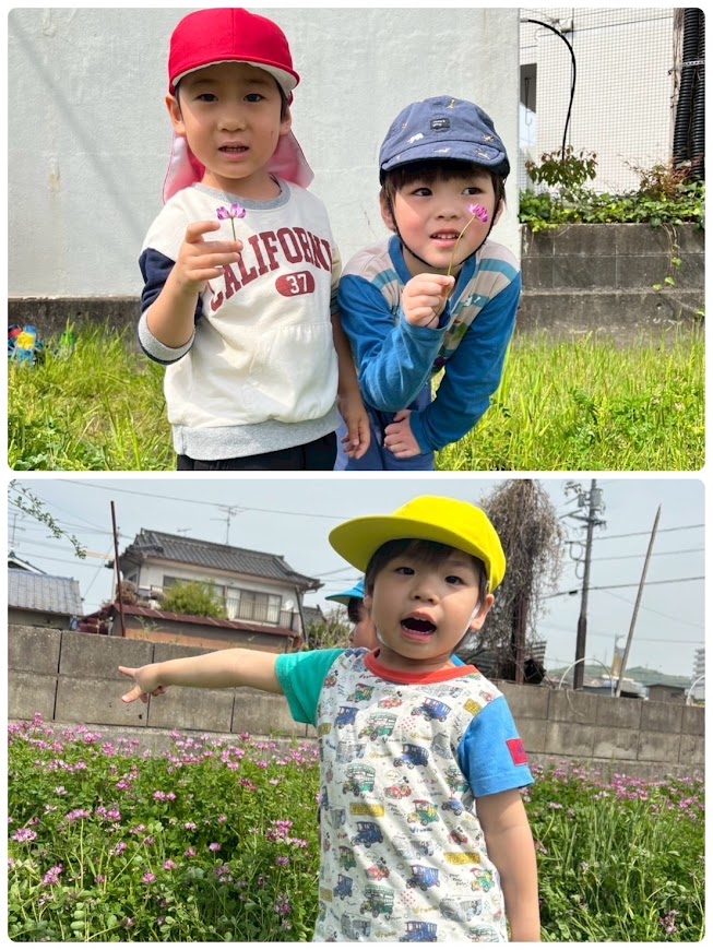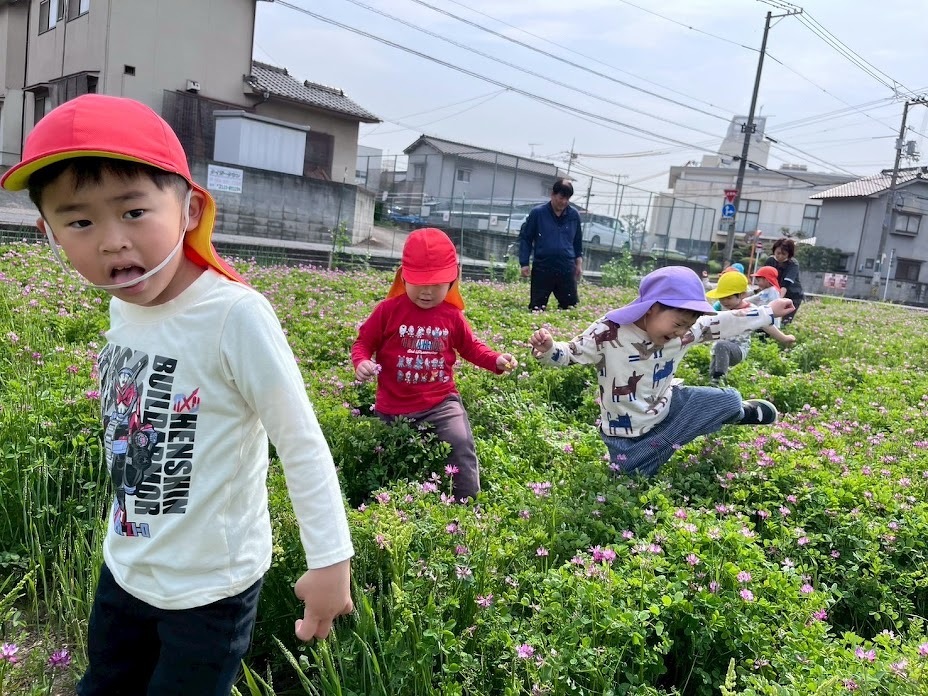 最近は見ることが少なくなりましたが、アイリー・らぼの近くのれんげ畑におじゃましました。「ちょうちょ!!」と追いかけてみたり、虫を見つけて嬉しくて職員に「みてみて」教えてくれたりとれんげ畑を楽しんでいましたよ♪