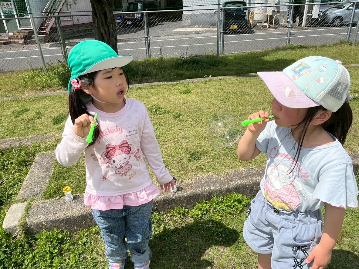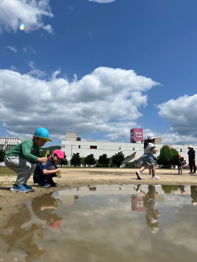 2025年05月28日(水) 活動ブログ シャボン玉であそんだよ こんにちは。アイリー・らぼ児発です。 先日雨上がりの公園に遊びに行ってしゃぼん玉をしました。水たまりに向かって吹くと太陽の光に反射してとってもきれいでした。 はじめは強く吹きすぎて上手くしゃぼん玉が作れなかった子も、回数を重ねるうちに息を吹く強さが分かってきて上手に作れるようになりました。お友だちと一緒にしゃぼん玉を作るのも楽しいですよね。 またお天気のいい日に公園でしゃぼん玉遊びをやりたいと思います。