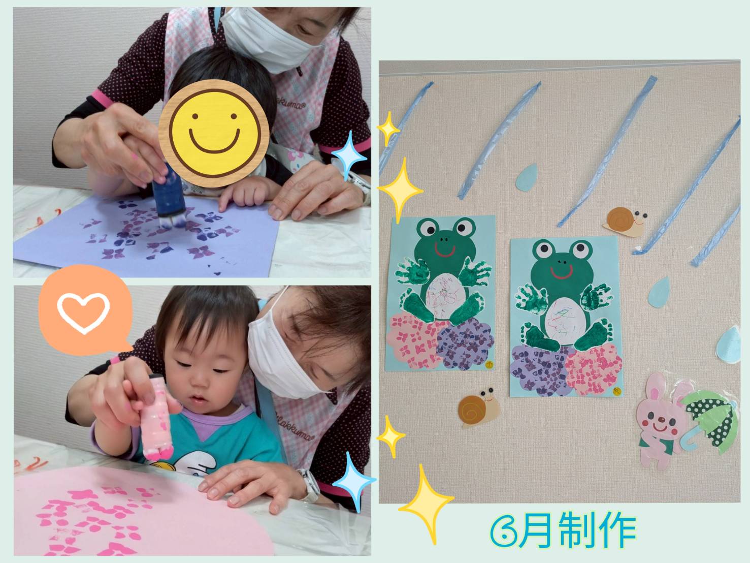 みにととろさんの小さな手をぺったん、足をぺったんして、可愛いかえるのできあがりです(*^-^*)
