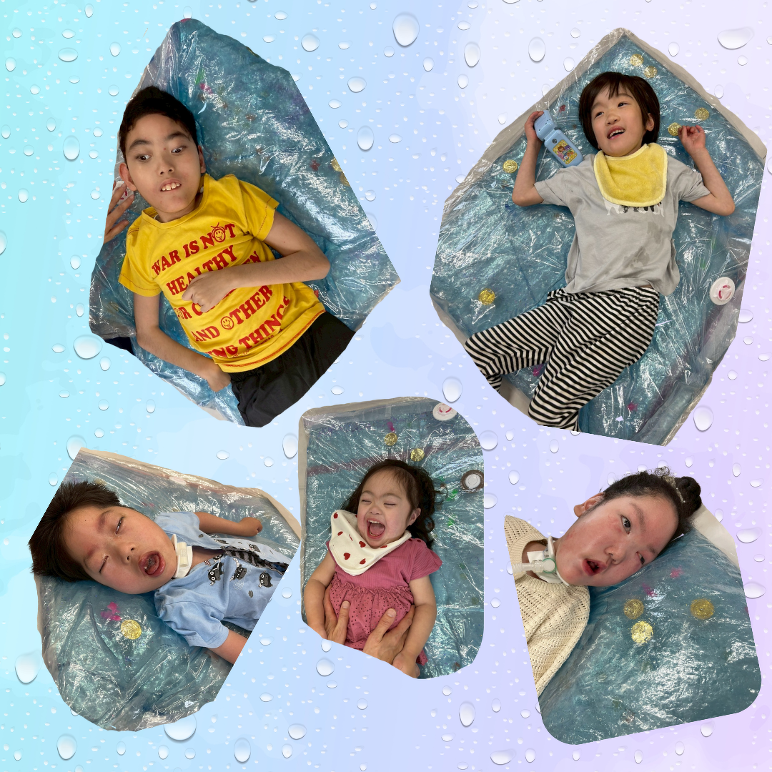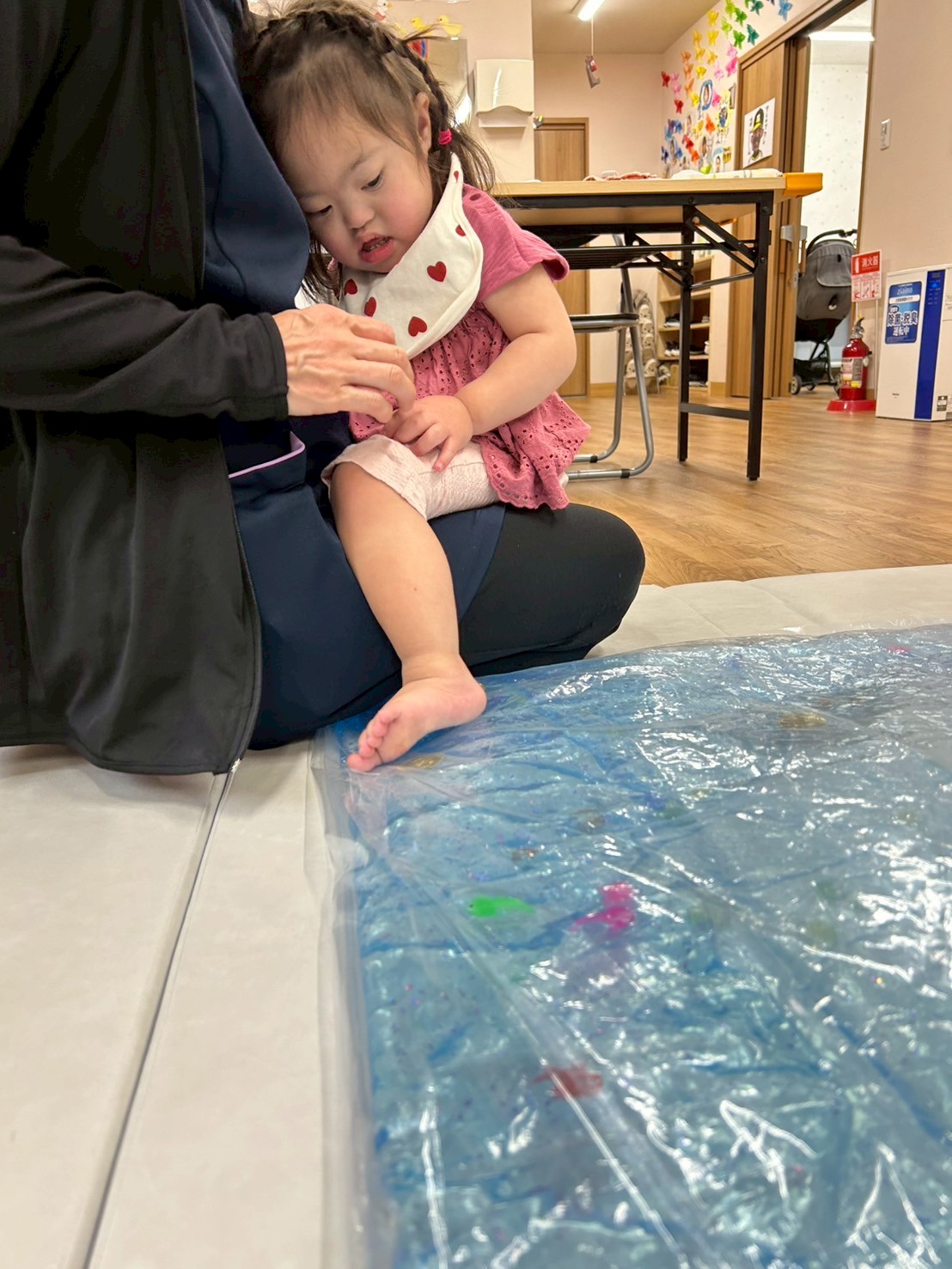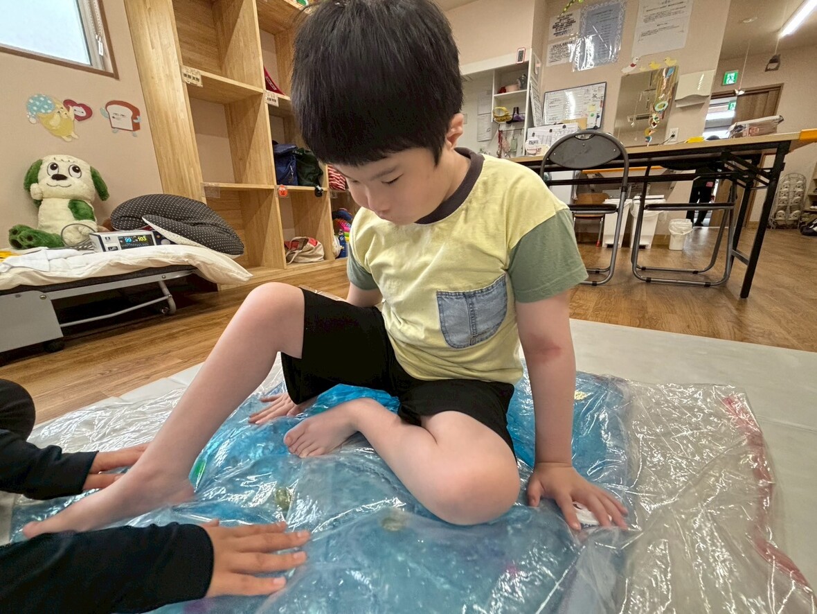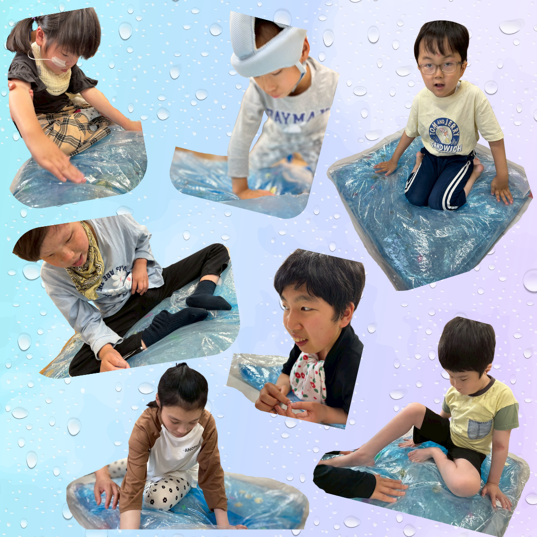 6月だというのに暑い日が続いていますね。そんな暑い日にぴったりの感覚遊びをした様子をお届けします☺
