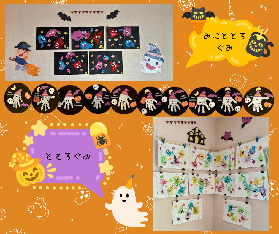 両クラスとも、モンスターを作りました!色々な表情のモンスターで、見ているだけでわくわくしますね♡
