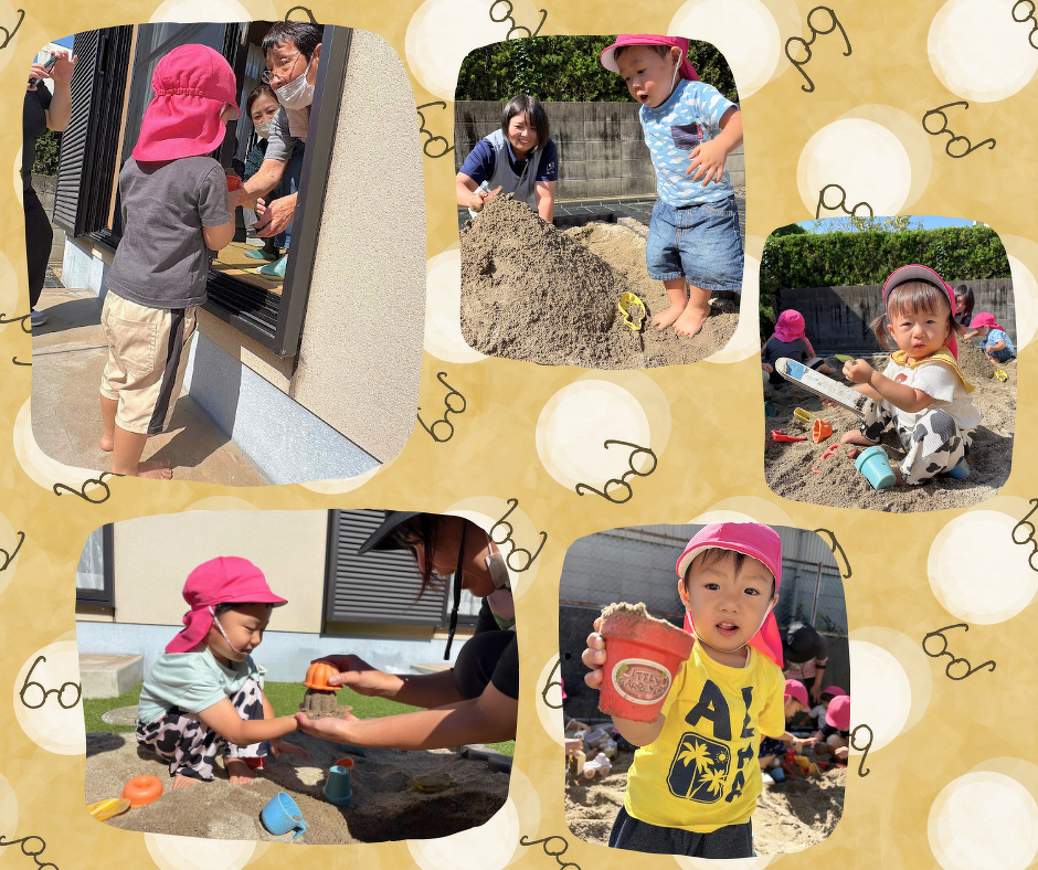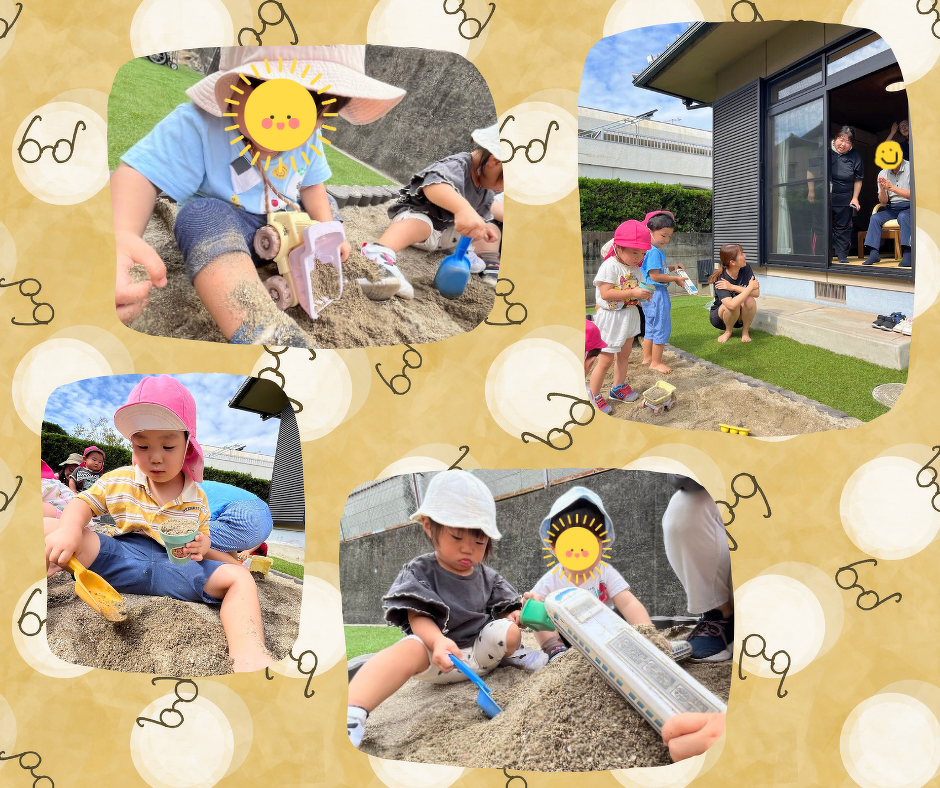 砂でアイスクリームを作って、おじいちゃんおばあちゃんに「どーぞ」と渡しに行ったり、「やっほー」と手を振ったりと、利用者様のおじいちゃんおばあちゃんとの交流を楽しむ子どもたち♪これからも、Doma Domaでの砂場あそびや交流を楽しんでいきたいと思います♡