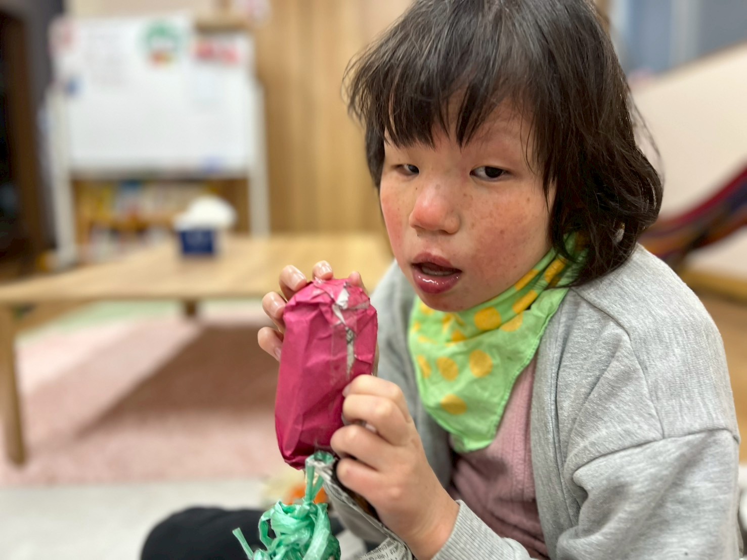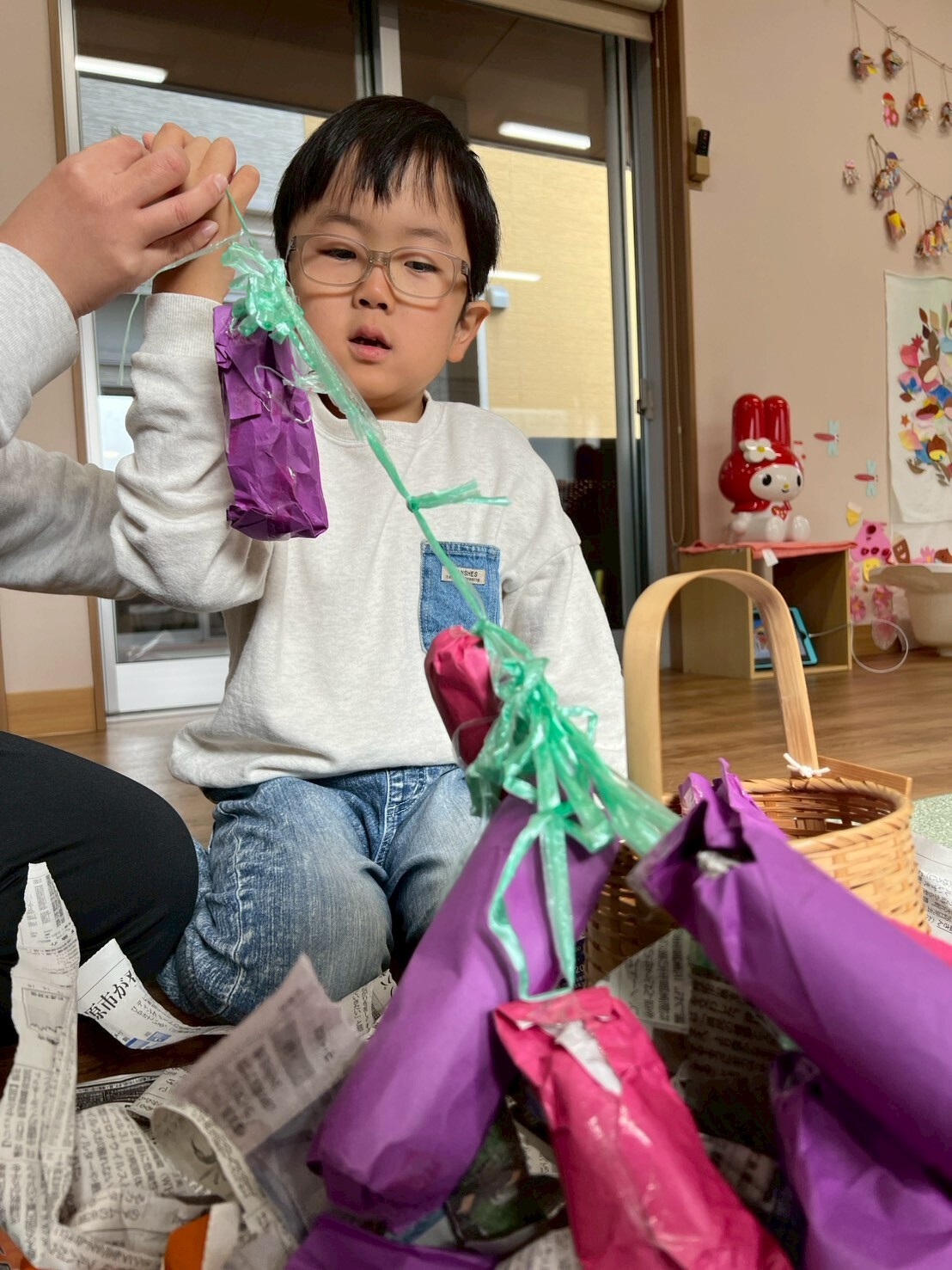 様々な素材に触れることで感覚を楽しんだり、お友達と一緒に競争したり、職員と話しながらゆっくり拾ったり。