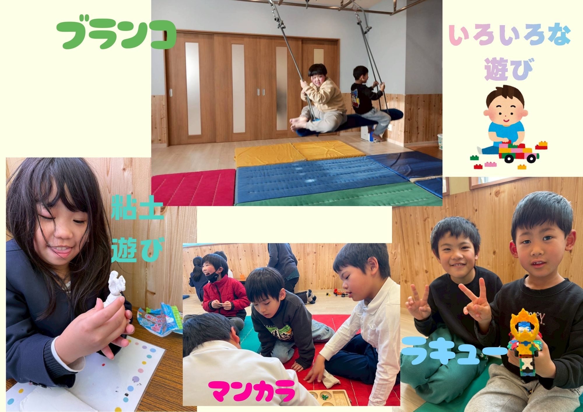 2026年02月13日(金) 活動ブログ らぼ放デイ★自由遊び(^^)/楽しいよ こんにちはアイリー・らぼです。 今回は子どもたちの自由遊びの様子をお届けします。 絵本ライブラリーで好きな本を読んだり 大人気のブランコがあったり 粘土、マンカラ、ラキューなど室内でも色々な遊びを楽しんでいます。