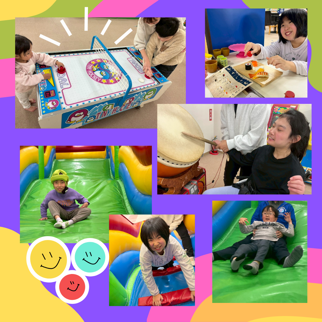 フワフワ滑り台やお店屋さんごっこやゲーム遊びなど、次々に遊びました。