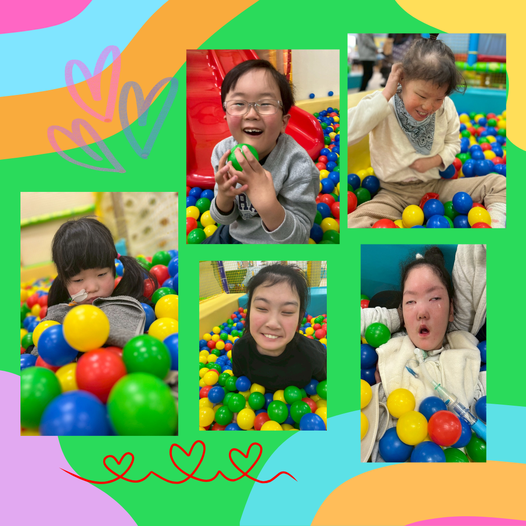 いっぱいのボールに埋まったり投げて遊んだり、、、滑り台からボールプールにダイブもしました。