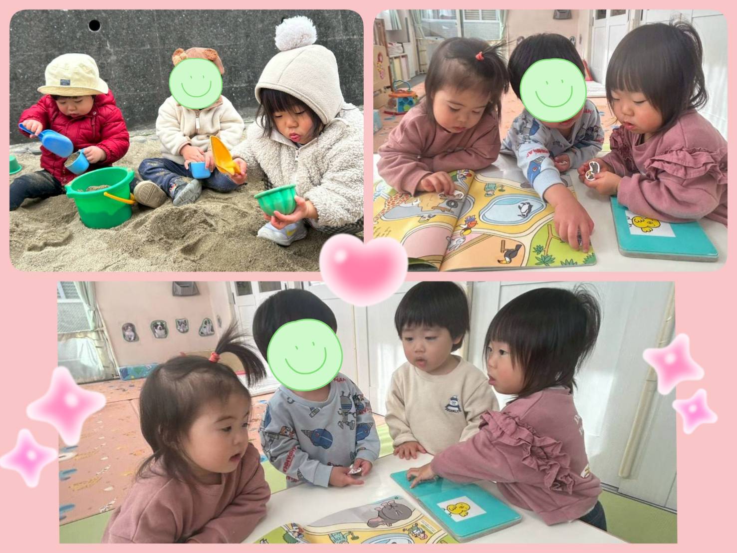 ひとり遊びが多かったのが、だんだんとお友だちに興味を持ち、交流を楽しめるようになりました(^-^)