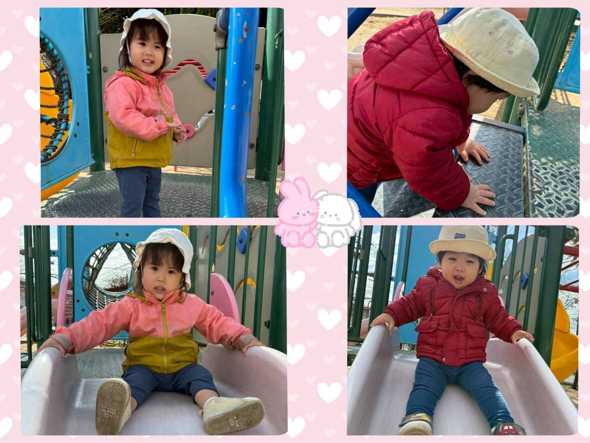公園の滑り台も最初は不安そうな姿でしたが、今では楽しそうに滑っていますよ~♪