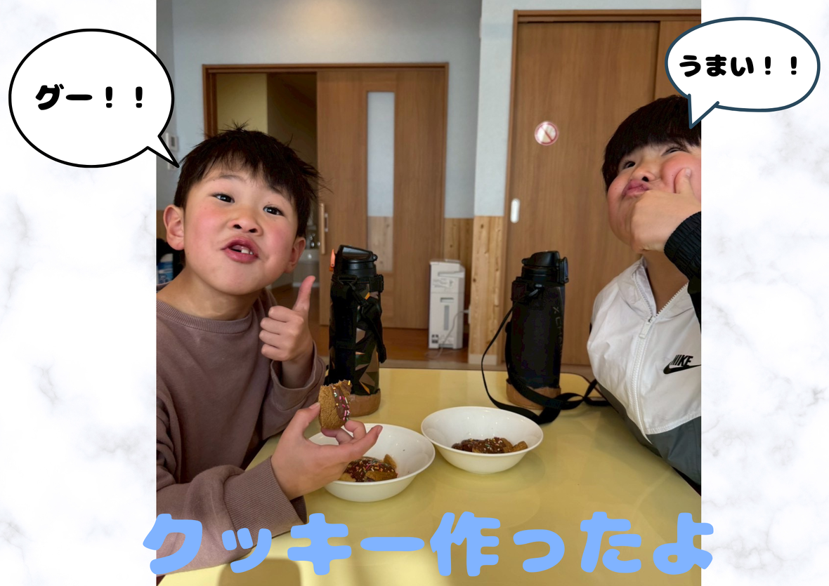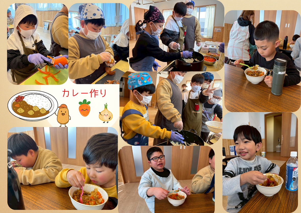 2026年03月23日(月) 活動ブログ アイリー・らぼ放デイ★レッツクッキング こんにちは(^-^) アイリー・らぼ放デイです。 今回のブログはクッキングの様子をお届けします みんなでクッキーを作りました!! 形は自由に☆♡□〇 焼いてチョコをつけて、、、「おいしい(^^)/」 続いては昼食のカレー作りです↓ 別の日には昼食のカレー作りをしました。 カレーが苦手な子もみんなで作ると美味しいと食べてくれました(^-^) カレーが好きな子は3杯ペロリと食べました!!