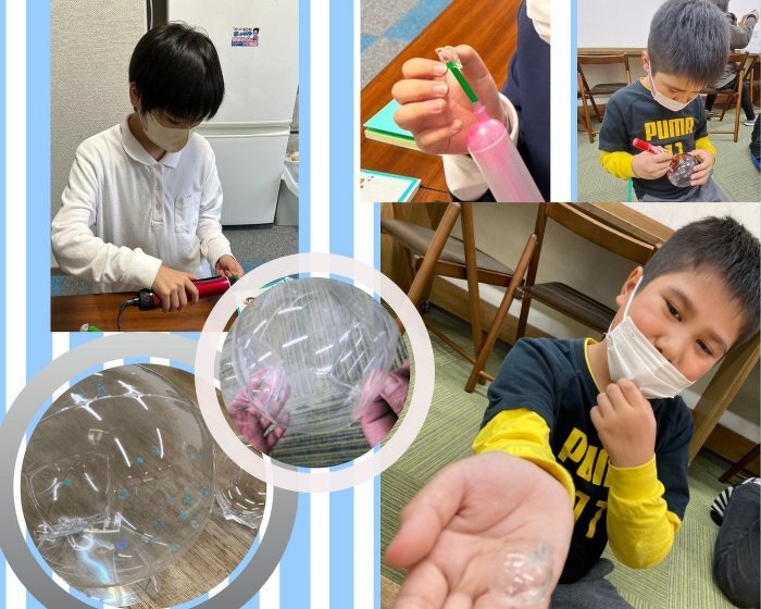 しかし…空気が入っていると中々膨らまなかったりストローで息を吹きかけるには肺活量がいります!空気入れで試してみたり、ストローで試したりといろいろと工夫をしながら挑戦!!