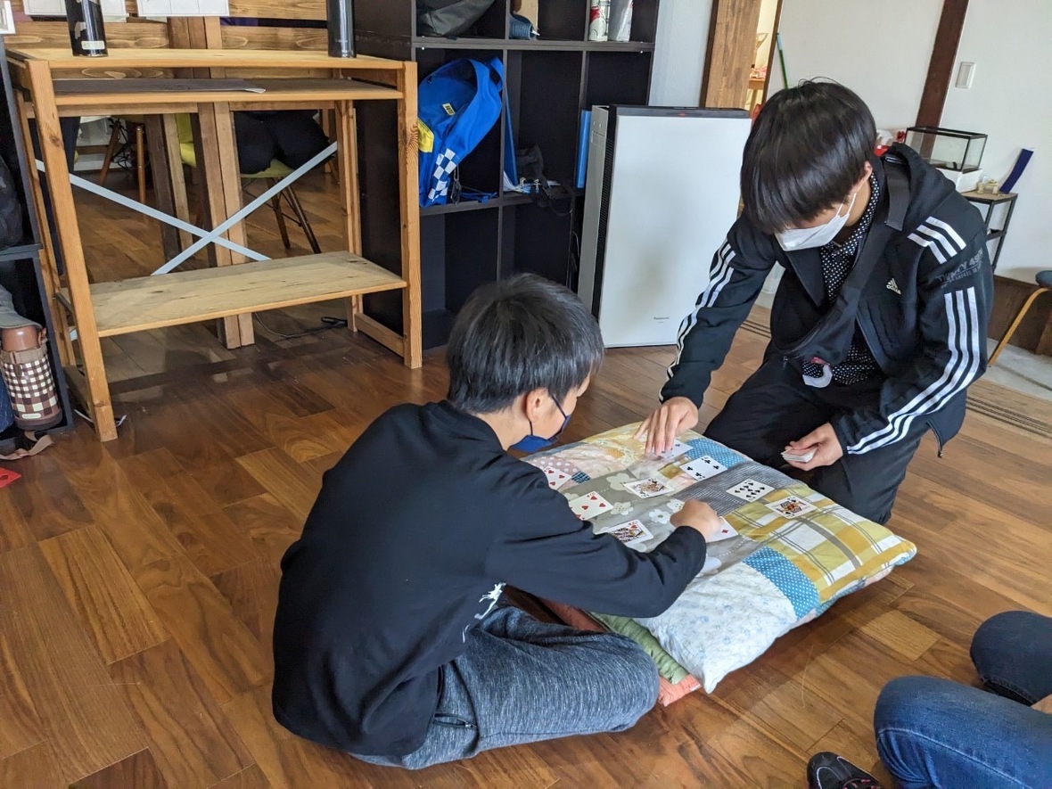 スピード以外にも、たこやきやブタのしっぽなど色々なカードゲームを子どもたちが教えてくれるので、
