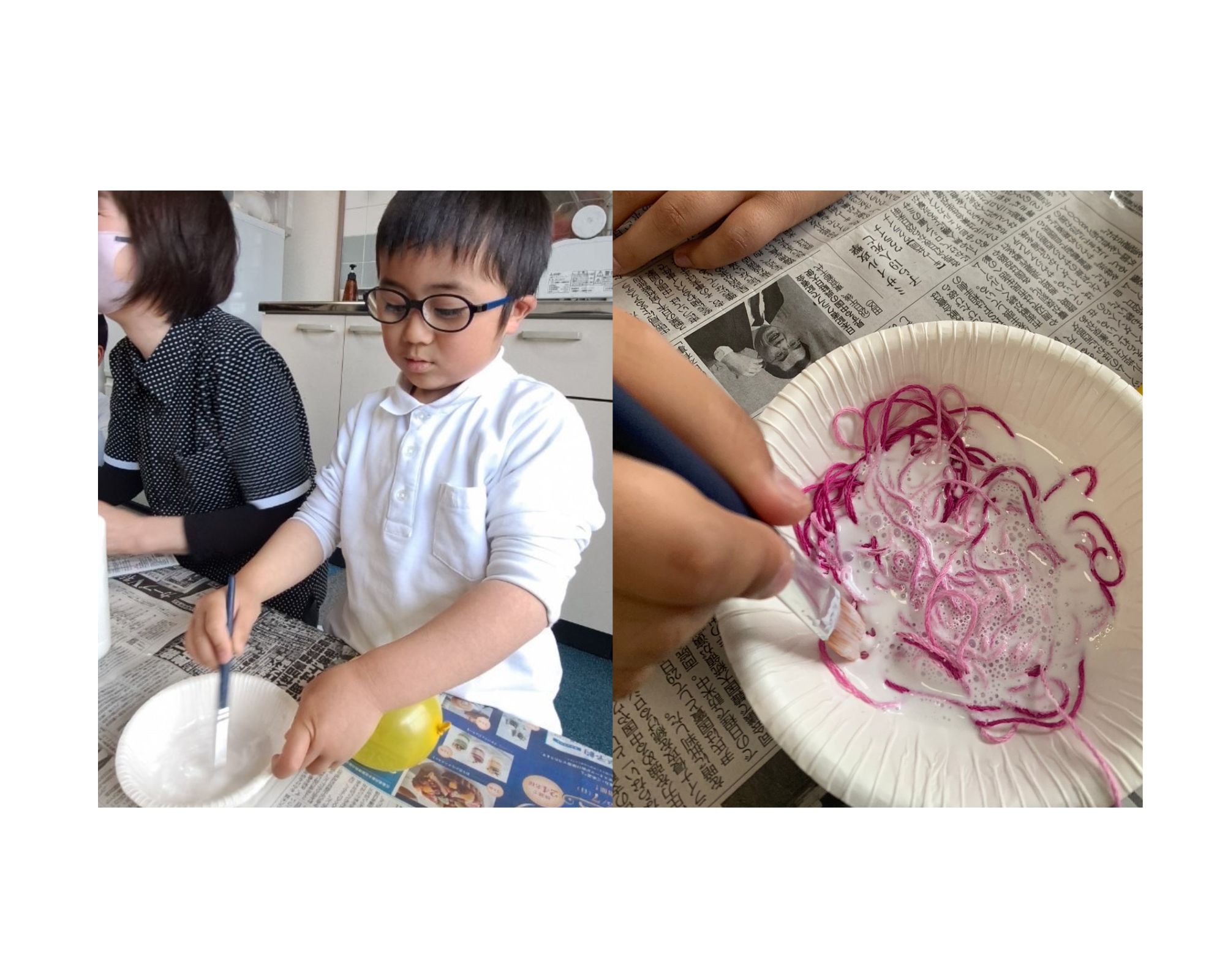 ③ボンドの中に、ししゅう糸を入れて浸す。(毛糸でも可)