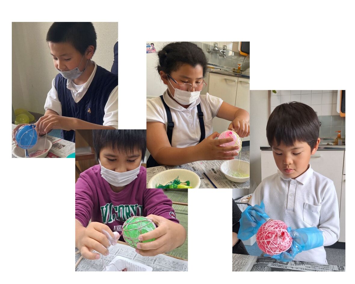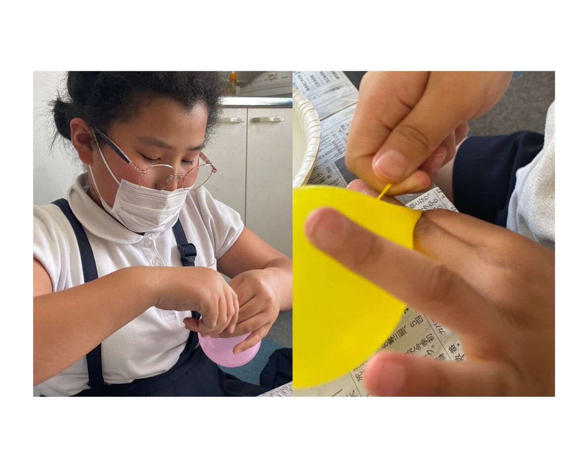 風船を膨らませたり、結ぶ作業はこういった機会を使って練習をしています!