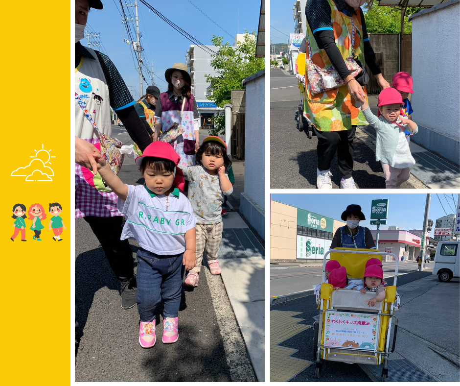 子どもたちと保育者で、内田公園まで遠足に行きました。朝登所してすぐ、おうちの方が用意してくださったお弁当と水筒を嬉しそうに見せてくれて楽しみにしていることが伝わってきました。子どもたちにとって行き慣れた公園ですが、普段と違った遊びをしたり、外でおやつやお弁当を食べたりすることで、「特別感」があって嬉しそうでした。