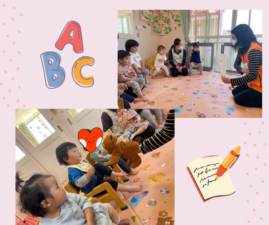 わくわくキッズでは、1•2歳児のととろ組さんは毎週火曜日に英語のレッスンがあります。2歳児さんは昨年度もやっていたので、果物や動物などの簡単な英語を覚えていて楽しんでいました。1歳児さんは、英語の先生とも初めましてで、英語のレッスン自体も初めてだったので緊張気味の子どもたちでした。今年度初の英語のレッスンだったので様子を伺いながらでしたが、音楽がかかると身体を揺らしたり、英語の教材に興味を示したりする姿がありました。回数を重ねることで、子どもたちも慣れてきてより楽しめるようになると思います。また、短い時間のレッスンですが毎週やることで英語が身に付きやすいみたいなので、今後の子どもたちの成長が楽しみです。