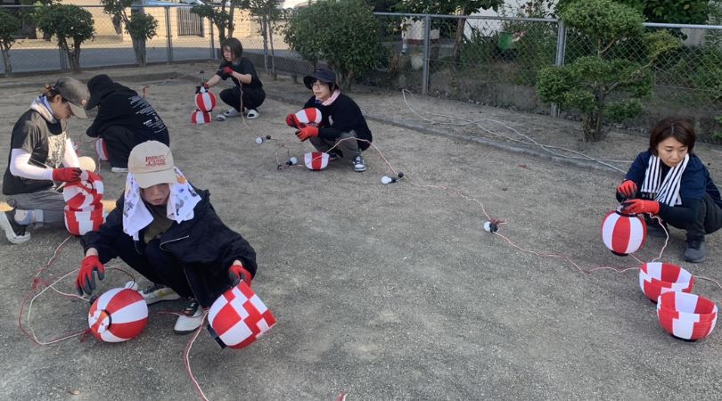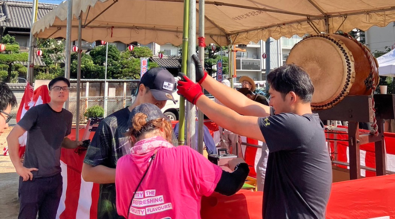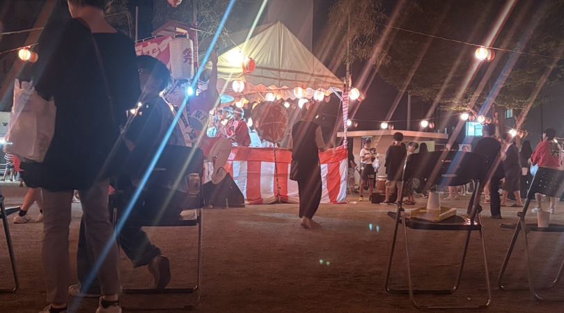 地域のおまつりで使うステージやちょうちんなどの準備で参加しました。夜には地域の皆さんが集まって、盆踊りを踊ったり、おいしいものを食べたりして楽しい時間を過ごしました!