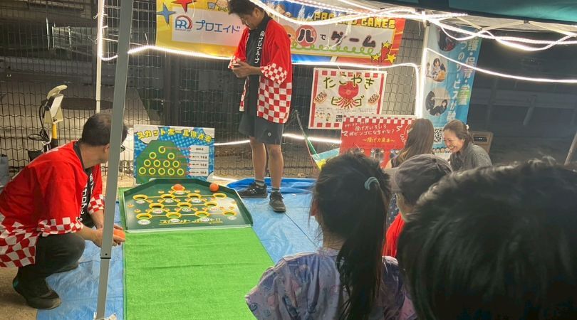 キッチンカー協会主催の蔵王公園水曜夜店にゲームの夜店を出しました。地域の方がたくさんあそびに来てくださり、特賞のスイッチを当てられた方もいらっしゃいました。後日、お宅へ伺い、お届けしました。おめでとうございました!