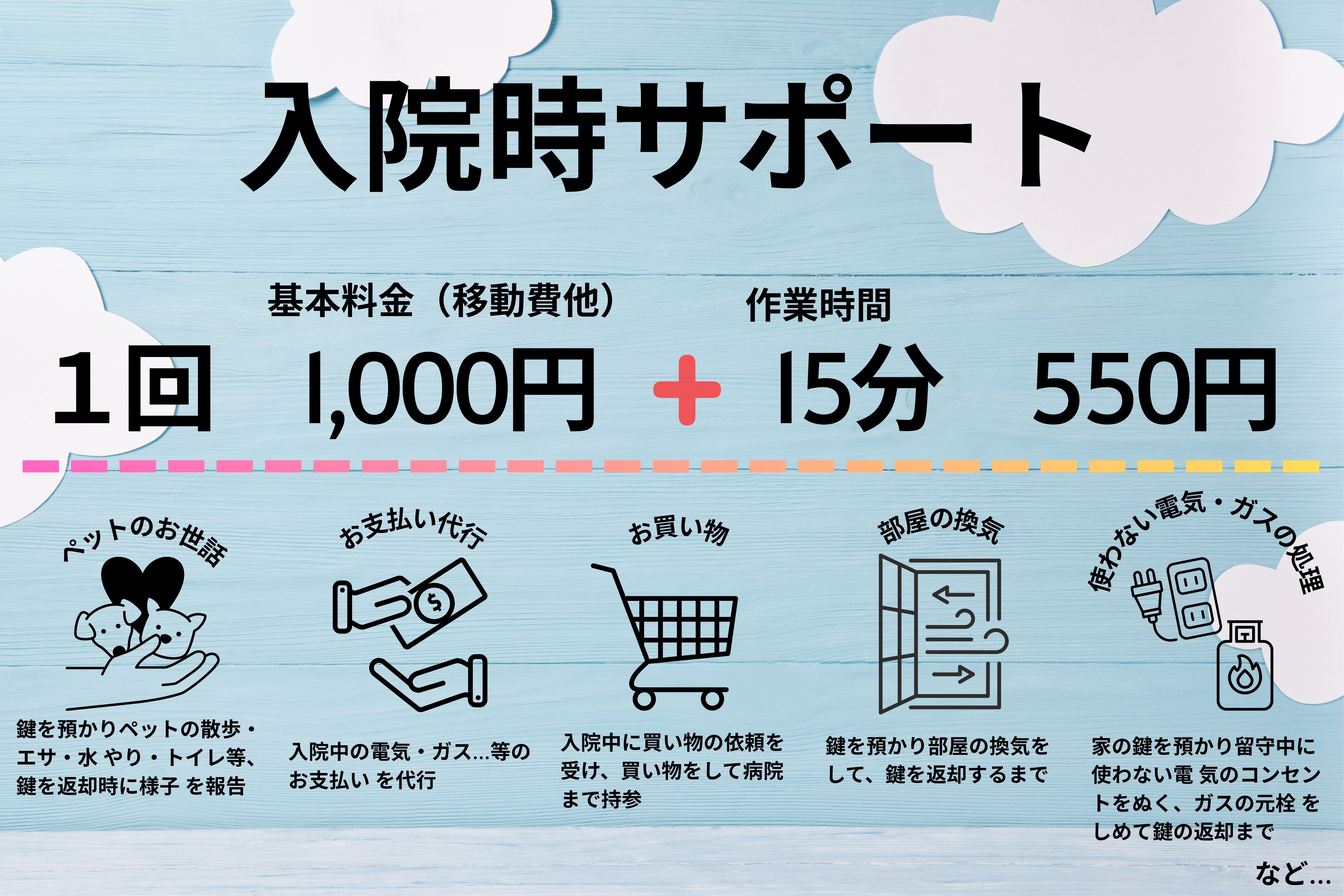 ・留守中のペットのお世話 ⇒ 作業時間 30分 1,100円+1,000円