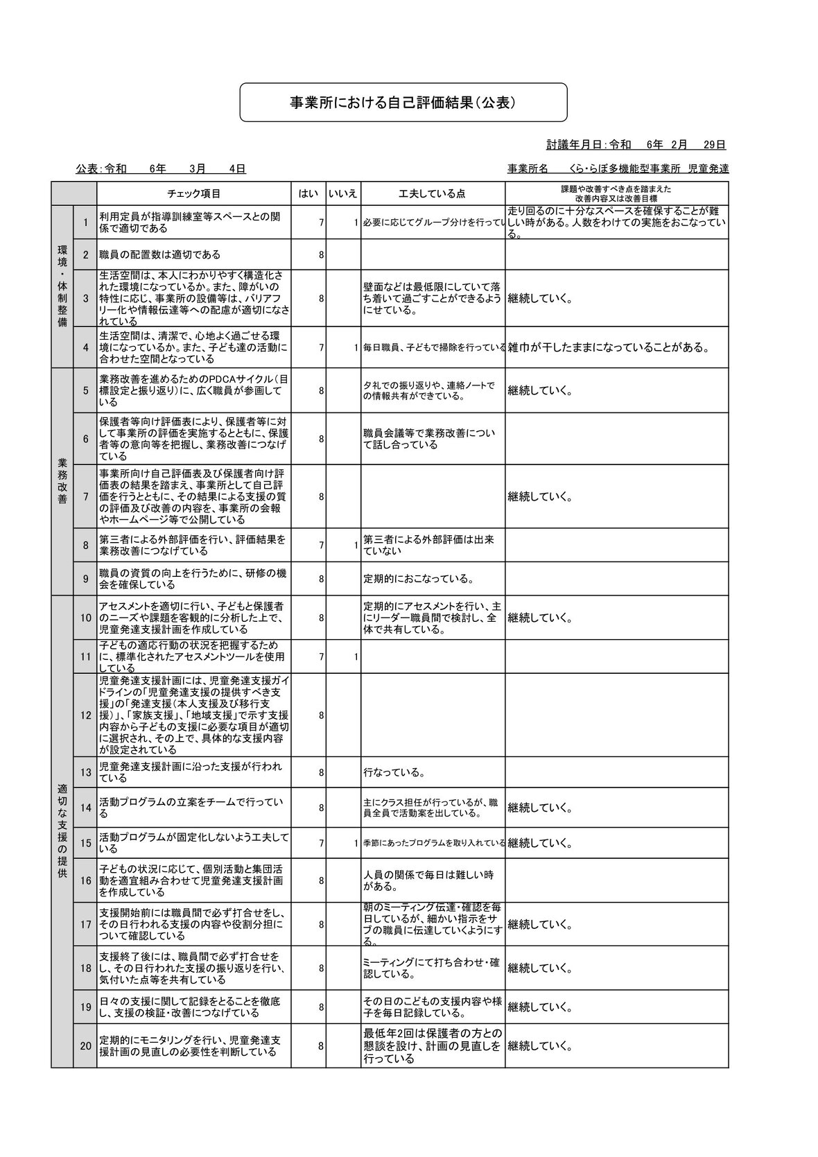 くら・らぼ多機能型事業所(児発)事業所評価について