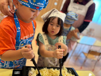 今月おこなった通常療育でクッキングをしました☆ ぺんぎん組さん、あひる組さん力を合わせて焼きそばを作りましたよ♪ ぺんぎん組さんは包丁を使って野菜切りに挑戦しました(^^)/ あひる組さんは、キャベツをちぎ...